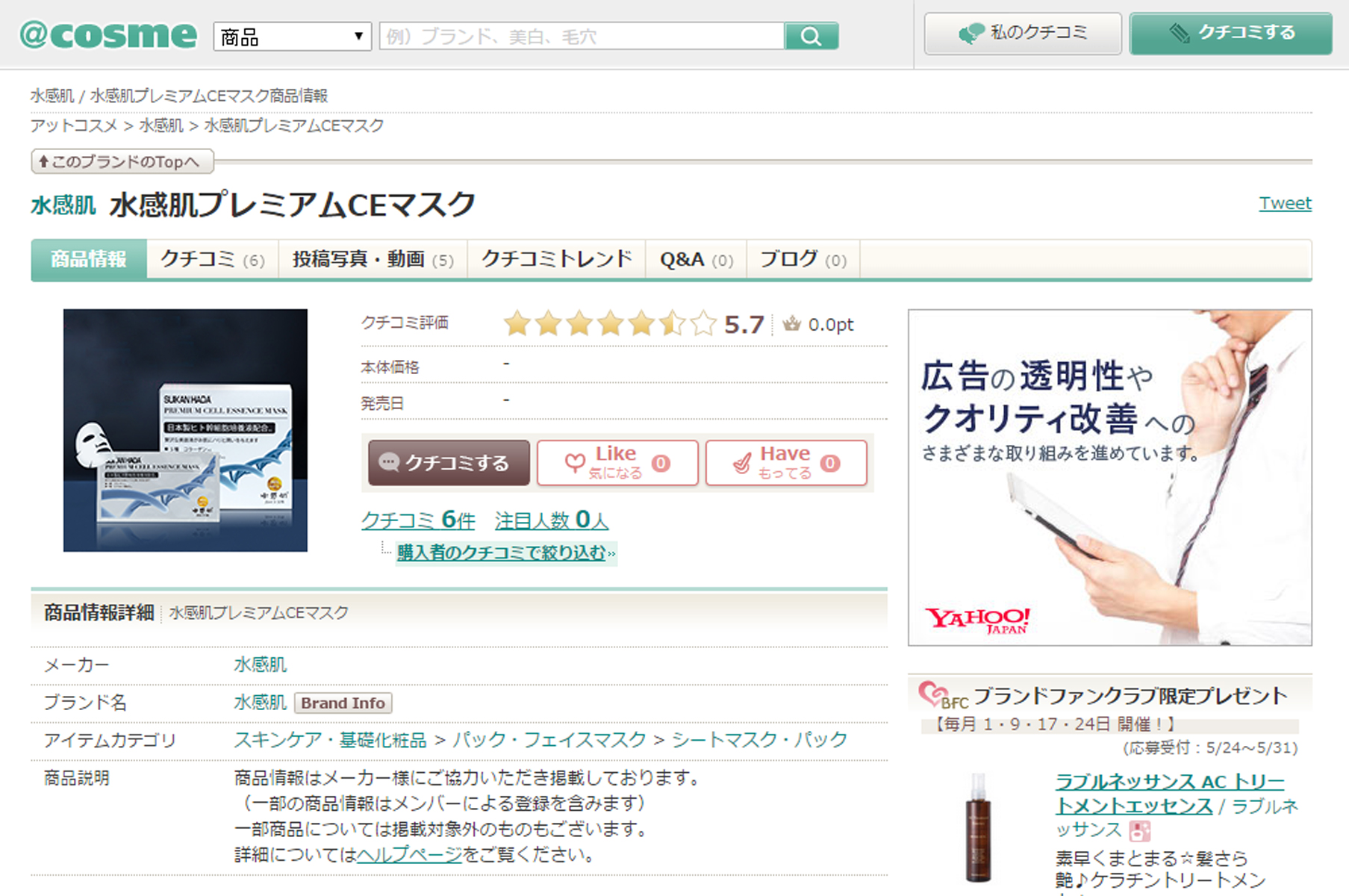 除此之外,水感肌干细胞面膜在日本cosme美容大赏的排行榜上均有排名,好评很好。日本cosme美容大赏是由消费者评选的化妆品排行榜,是最具权威的美容化妆品排行榜之一,其官网为日本最大级美容综合网站。
